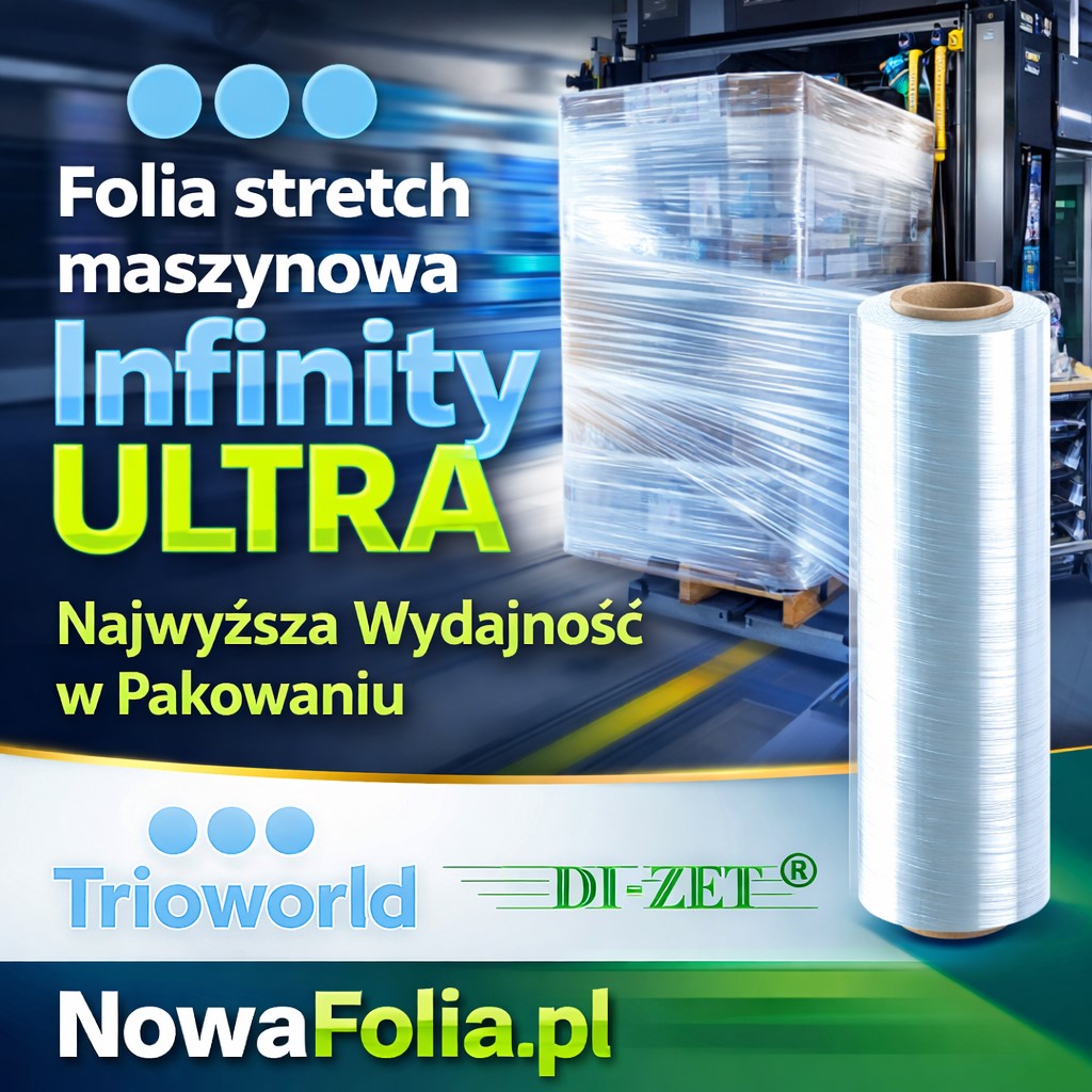 Trio Infinity Ultra to nasza najbardziej zaawansowana technologicznie, wysokowydajna folia stretch, stworzona specjalnie z myślą o najszybszych owijarkach automatycznych. Dzięki ciągłemu rozwojowi i zastosowaniu nowoczesnych technologii, produkt ten oferuje najwyższą stabilność ładunku przy zachowaniu najniższego kosztu jednostkowego za owiniętą paletę.